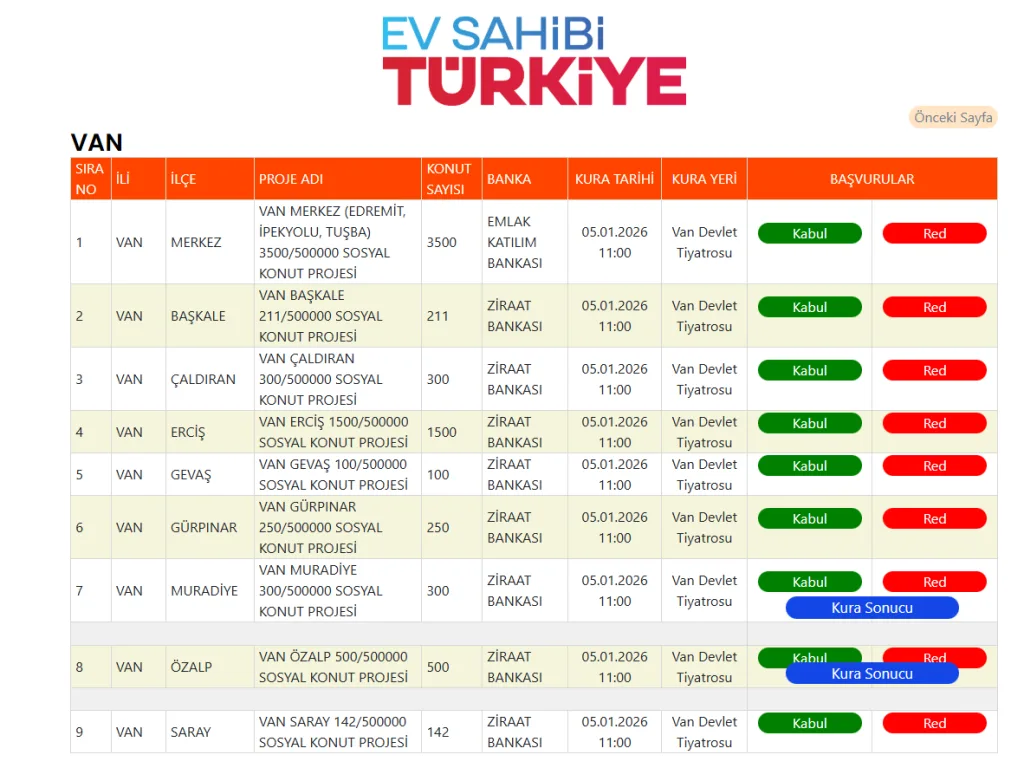 VAN TOKİ KURA SONUÇLARI 2026 – 500 BİN SOSYAL KONUT VAN HAK SAHİPLİĞİ BELİRLEME KURASI