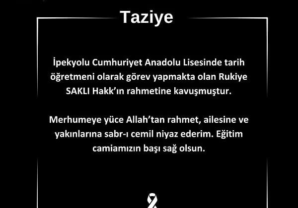 Eğitime olan bağlılığı ve öğrencilerine olan sevgisiyle tanınan Rukiye Saklı’nın vefatı, öğretmenlik mesleğinin ne kadar değerli ve kutsal olduğunu bir kez daha gözler önüne serdi. Öğretmenlerin, öğrencilere sadece akademik bilgi değil, aynı zamanda sevgi ve özveriyle büyütülen hayat dersleri verdiği unutulmamalıdır.